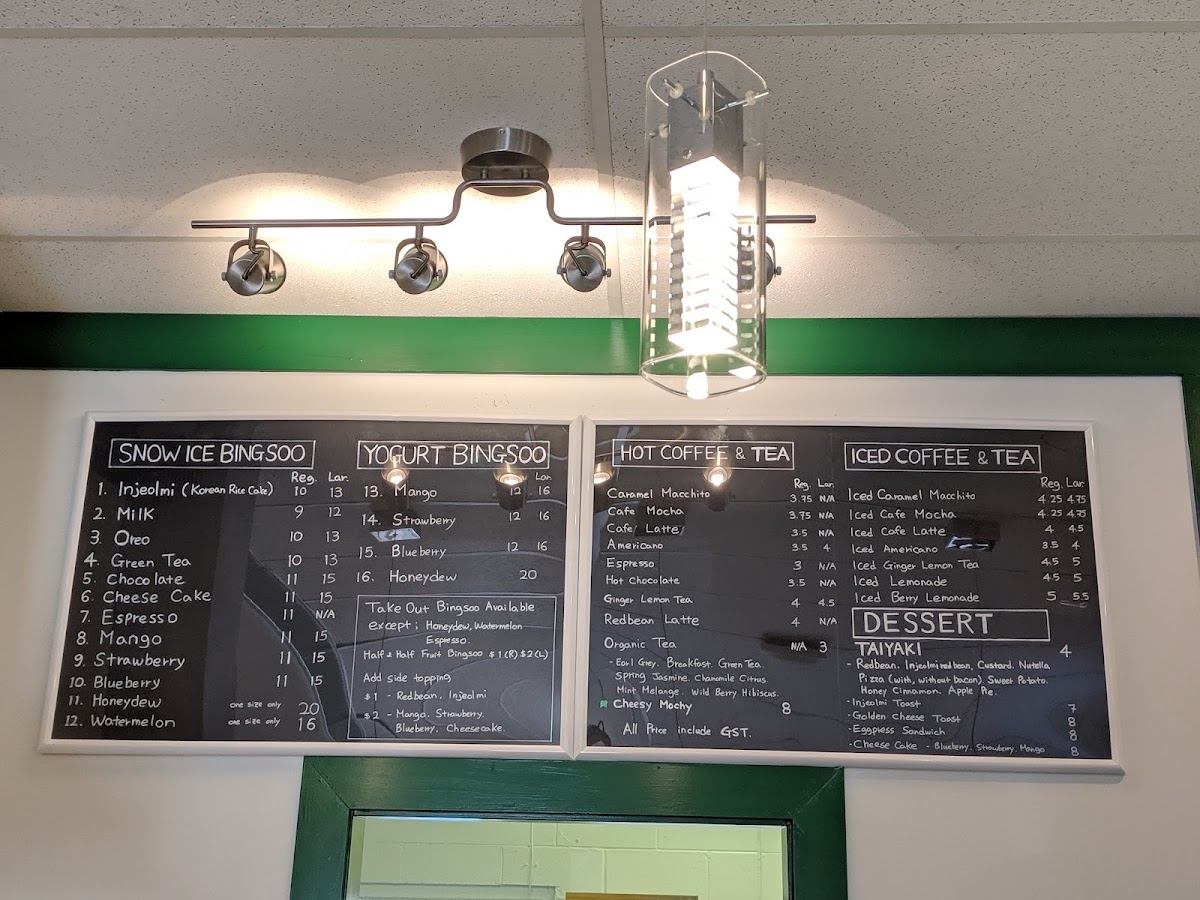 Oreo bingsoo was great. Think the lady was running out of blueberry drizzle for the blueberry bingsoo, but still tasted good. She was operating the whole establishment by herself. Very much appreciated the effort. Had a hilarious chat about us both being from Alberta. Prices very affordable: I swear cheaper than the Richmond location. Only around 12. The ginger herbal tea was great for my stuffy nose during the rain. Would definitely comeback and recommend. Location had a minimalist vibe. Owner puts a lot of effort into.