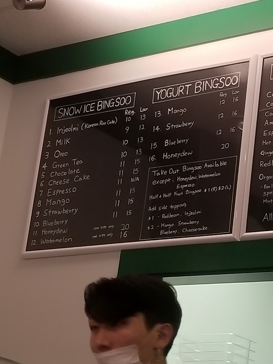 It was delicious dessert, my husband and I enjoyed it. Saw someone having watermelon bingso and he said it was really good my eyes went big. The owner was very polite and friendly to everybody. Will definitely comeback! Got take out for mom too.